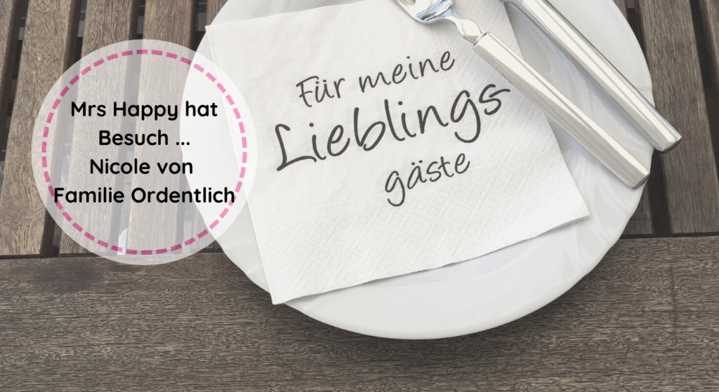 Juhuuu, ich freue mich … Mrs Happy hat wieder Besuch bekommen. Ich freue mich riesig, dass Nicole von Familie Ordentlich mein zweiter Lieblingsgast ist. Nicole habe ich vor ungefähr 2 Jahren bei der allerersten Blog-Challenge kennen gelernt, an der ich teilgenommen habe. Seither „begegnen“ wir uns immer wieder virtuell. Im Frühjahr hätten wir uns beinahe in
