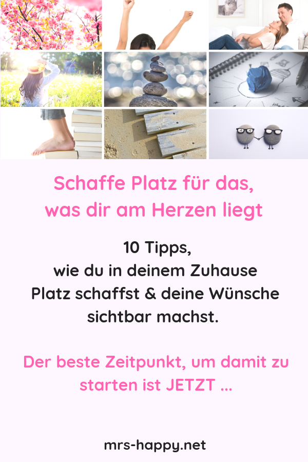 - Klarheit finden: Damit fängt immer alles an. Was möchtest du wirklich? Worüber freut sich dein Herz und was lässt deine Augen strahlen? Finde zunächst heraus, für was du Platz haben möchtest. Der Platz wird sich dann finden.